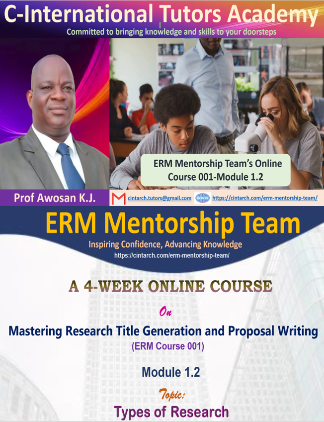 This ERM Course 001 Module 1.2 video on “Types of Research” explains how research can be categorized based on its objectives (basic or applied), method (observational or experimental), source of evidence (empirical or non-empirical), nature of data (quantitative, qualitative, or mixed), purpose or function (review or validation), and disciplinary focus (such as biomedical, educational, or agricultural research). The video emphasizes that selecting the appropriate type of research is essential for ensuring methodological rigor, relevance, and meaningful outcomes.